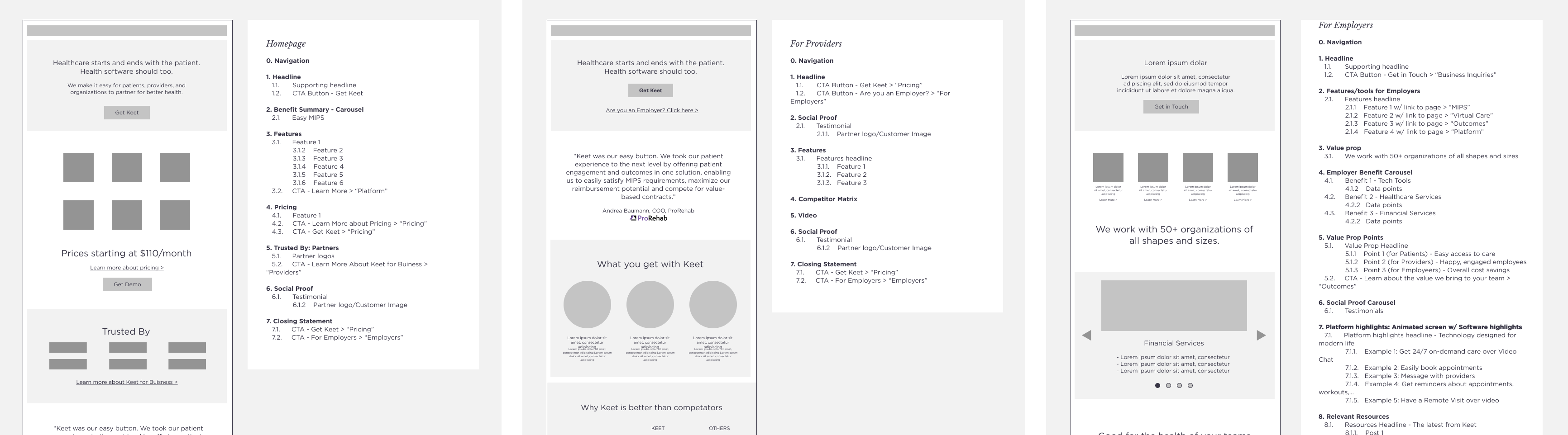 Keet is redefining the healthcare experience, with lofty goals for expansion and market share. Working in close collaboration, we provided them with a strategic vision for both the marketing site and the brand. They now have a clear product positioning, a personalized experience for all users, and are armed with tools to grow the site and the product into the future.